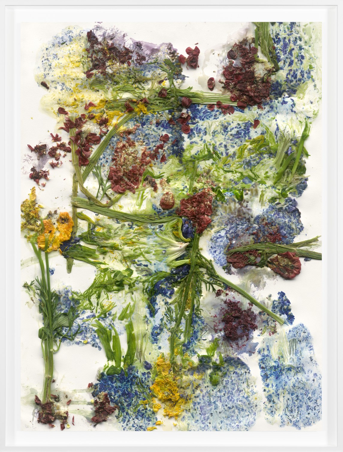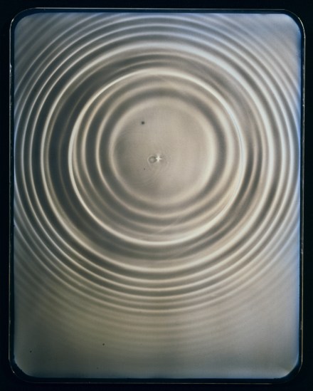 His work includes photograms of water droplets, smoke, flowers, christening gowns, birds captured in flight, and snakes swimming through water—images that radiate a curious living presence. Writing about his photograms in Aperture, Michael Sand notes, “Part of the appeal of the photogram for Fuss is its directness. The objects depicted came into physical contact with the very paper on which the final print appears. The experience is somehow also more tactile, and in the case of Fuss’s recent work, more visceral. The photograms that involve plants and animals seem not to depict—they invoke the moment of photographic creation, and the life of the organic material, with an eerie immediacy.”