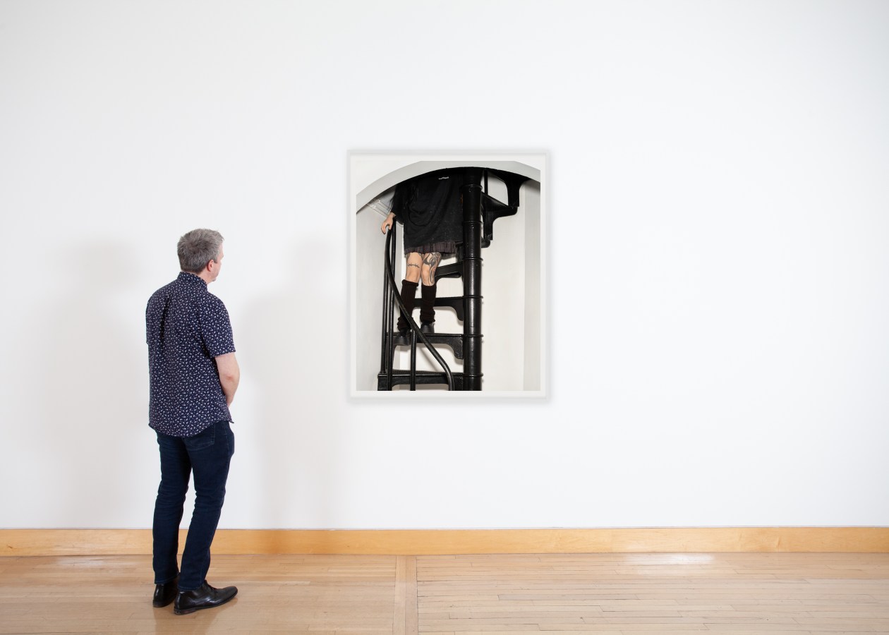 Soth photographs art students framed by their work and their tools, peeking from behind canvases or holding a shutter release cable. In Ricky, Soth pictures one student sitting for another, complicating the relationship between artist, subject, and viewer.