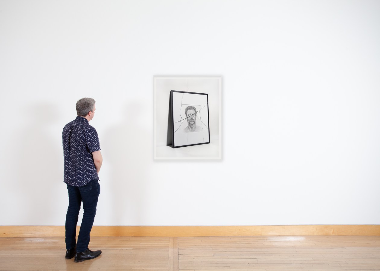 In the image pictured on the monograph’s cover, a pencil sketch of Soth’s face is framed behind cracked glass. Drawn by Soth’s intern at his request, the work’s shattered surface undermines any authority or self-seriousness it might otherwise embody.