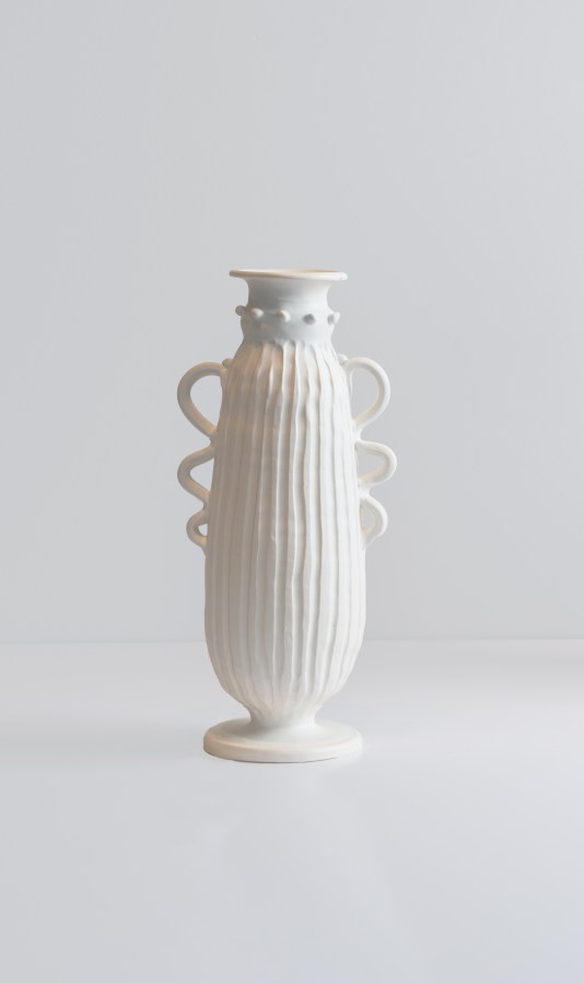 In a series of prints, Fuss considers Theia, the name given to a hypothetical planet that may have violently crashed into the Earth billions of years ago, ejecting the debris which formed our moon. Theia is also the Greek goddess of sight, prophecy, and brilliance, who is thought to endow gems and gold with their visible glimmer and intrinsic value.