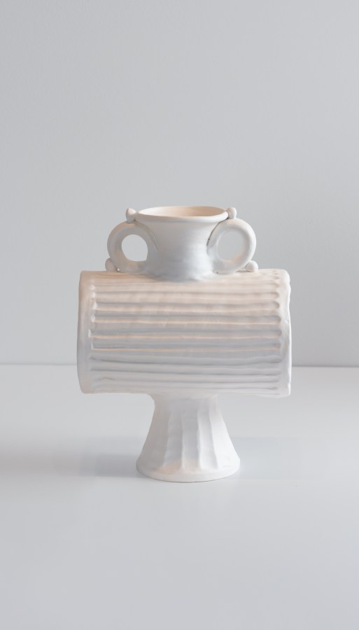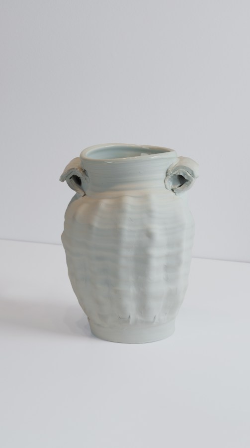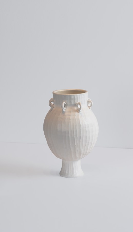Installation view of Adam Fuss's Theia, 2024 (left) and Richart T. Walker's an acquiescence of meaning #2, 2020 (right)