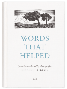 Adams’s most recent publication Words That Helped (Steidl, 2023) compiles quotations and aphorisms the artist has collected over six decades with his own photographs.